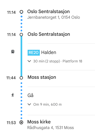 Transport: Festlighetene starter offisielt kl 12 på Moss Kirke. Dit kan man komme seg med bil, eller med tog. RE20 Halden går fra Oslo S til Moss 11:14-11:44. Fra kirken til Røed Gård vil vi be gjester med bil om kjøre de som kom med tog.